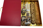 Het boek van Sinterklaas gevuld met 150 gram Sintchocolaatjes, 250 gram strooigoed, 1 chocolademelk stick, marsepein worst 100 gram, gevuld speculaasstaaf, roomboter amandelstaaf